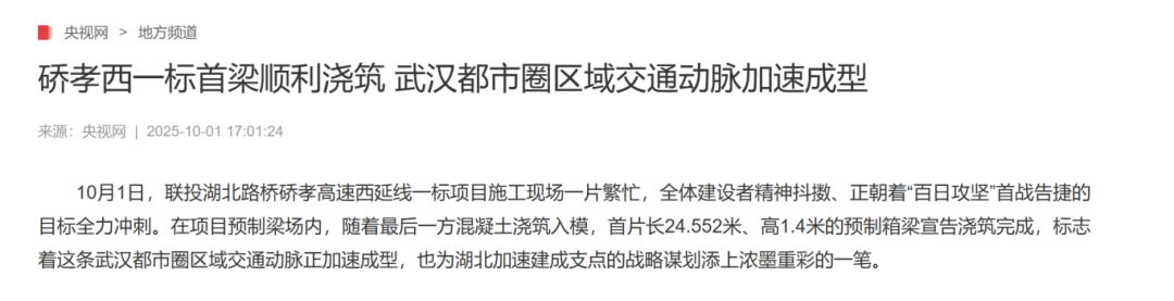 挺膺担当 建功支点㉒ | 联投湖北路桥硚孝西一标首梁顺利浇筑 武汉都市圈区域交通动脉加速成型