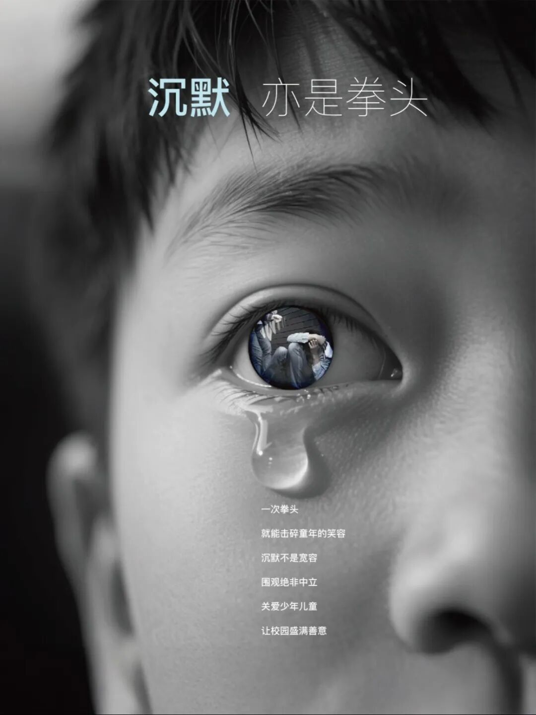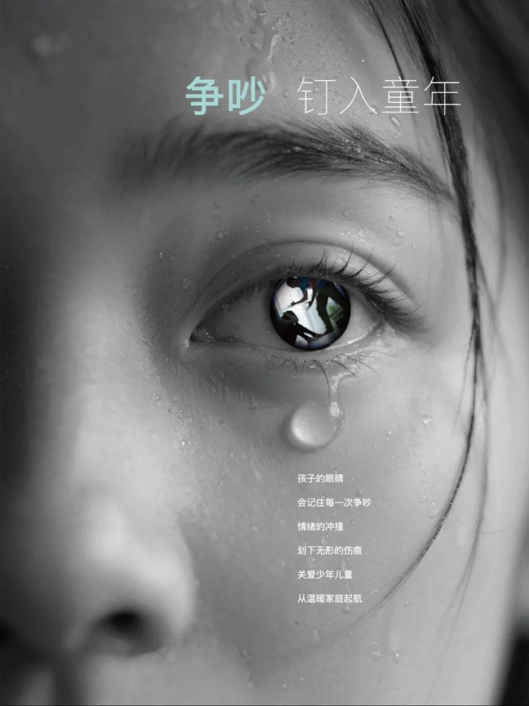 聚焦“关爱少年儿童健康成长”主题,以负面视角切入,呈现出家庭争吵与校园暴力对孩子心灵的双重伤害。通过强烈的视觉冲击与情感唤醒,提醒社会:伤害并非只来自拳头与巴掌,争吵与沉默同样会成为孩子心灵深处的阴影。
