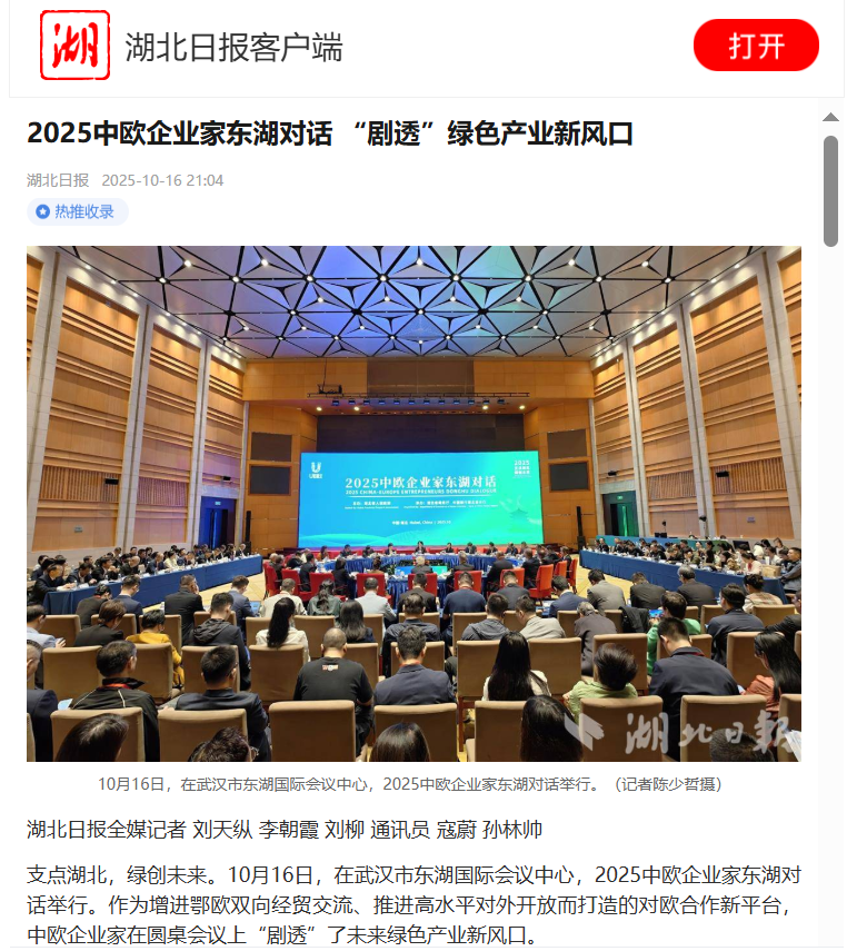 湖北日报:2025中欧企业家东湖对话 “剧透”绿色产业新风口